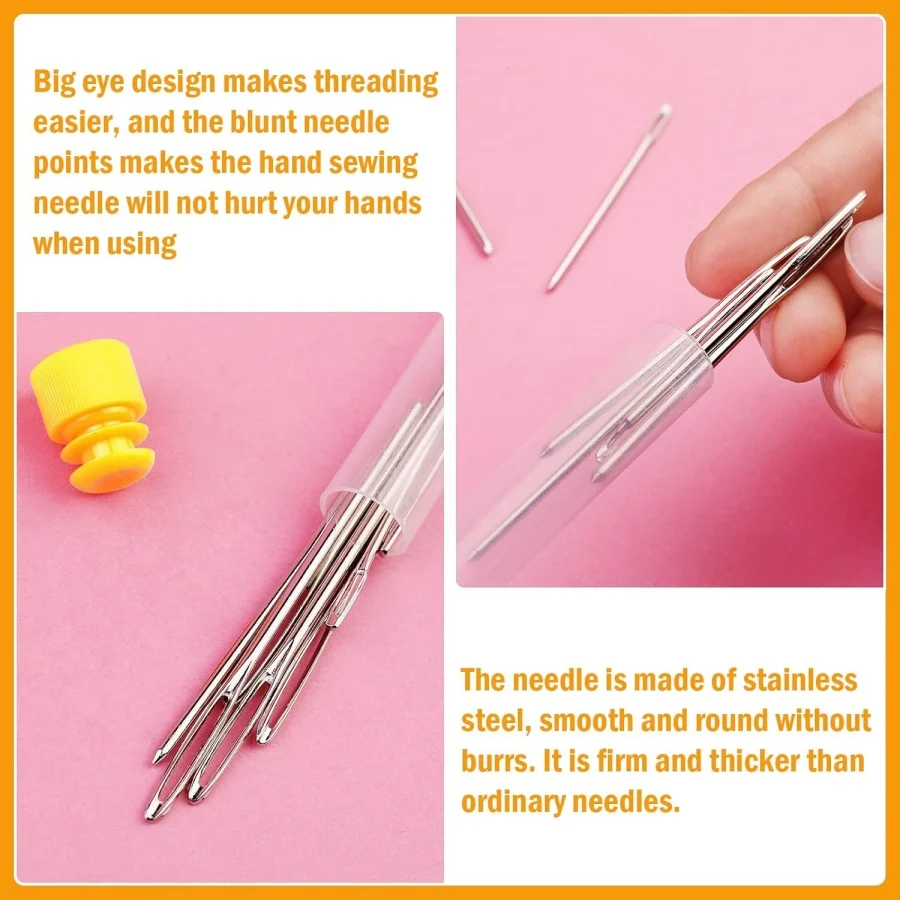 This stitch markers kit provides you with a total of 300/600 stitch markers, 9 blunt hand sewing needles in 3 sizes, 1 needle tube and 1 storage box