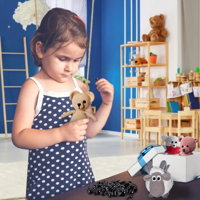 4.Notes: The matching washer makes the safety eyes for crochet not easy to fall out, but these button eyes for crochet are very small for children, please be accompanied by parents when kids use it to avoid accidental ingestion.In addition to that because it is machine made, if there are some small chips or dents on the safety eyes, it can be trimmed before use.(Age grading:3+ years.)