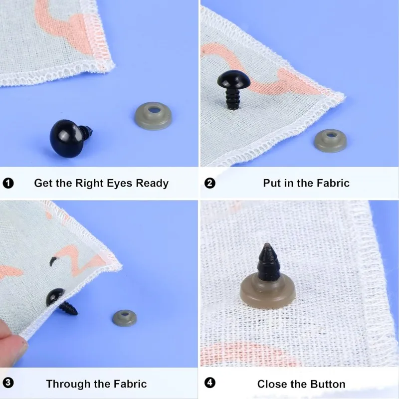 3.Easy to Operate: This plastic eyes for craft use practical thread design, stuffed animal eyes for crochet go through the fabric, hold the plastic spacer tightly on the back to prevent it from falling out, and the simple operation makes the process of making dolls smoother.